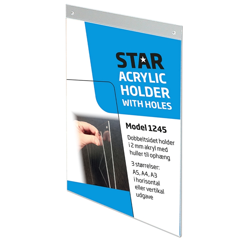 Akrylhållare med öppning och hål upptill. Snabbt meddelandeutbyte. Plastfickan hängs enkelt upp på väggar eller i taket.