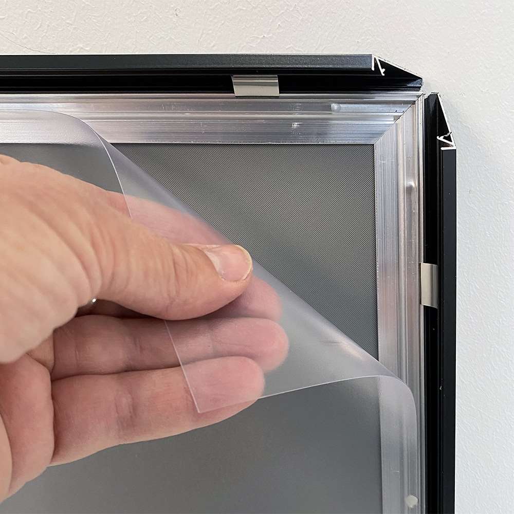 • Levereras med en bakplatta i 1,5 mm PS och en antireflex APET-frontplatta, vilket säkerställer att innehållet är väl skyddat och lätt att se.
