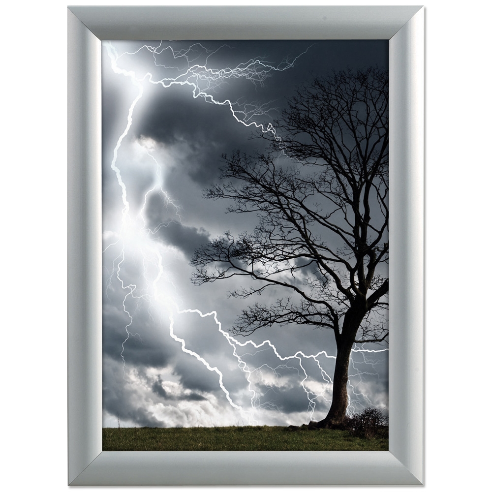 • Silveroxiderad aluminiumsnäppram med geringhörn, som ger en stark och hållbar ram för din affisch.