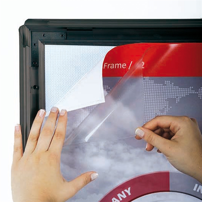 • Integrerad frontplåt: Ramen inkluderar en frontplåt i APET, som säkerställer optimal visning av innehållet.
