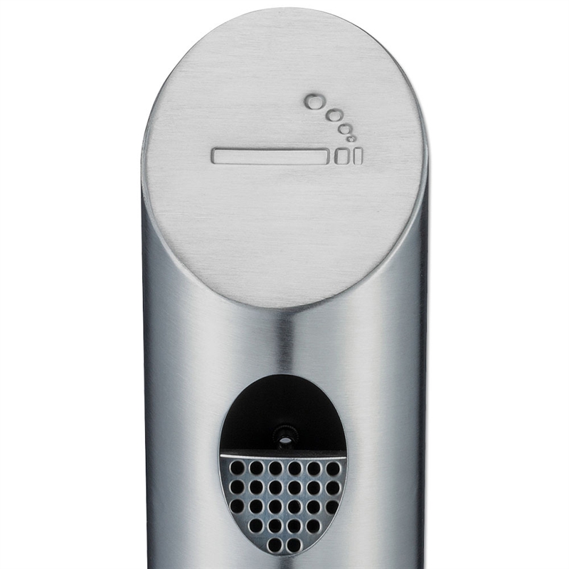 Dess rörformade design ger en praktisk och platsbesparande lösning för alla områden. Med en total storlek på Ø 9 x 35 cm passar detta askfat diskret in i alla miljöer, samtidigt som den bibehåller en betydande kapacitet för aska och cigarettfimpar. Den lätta vikten på 1,6 kg gör den enkel att hantera och flytta vid behov. Välj detta askfat i borstat stål för en lösning som kombinerar stil, hållbarhet och funktionalitet i en och samma produkt.