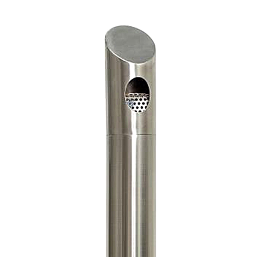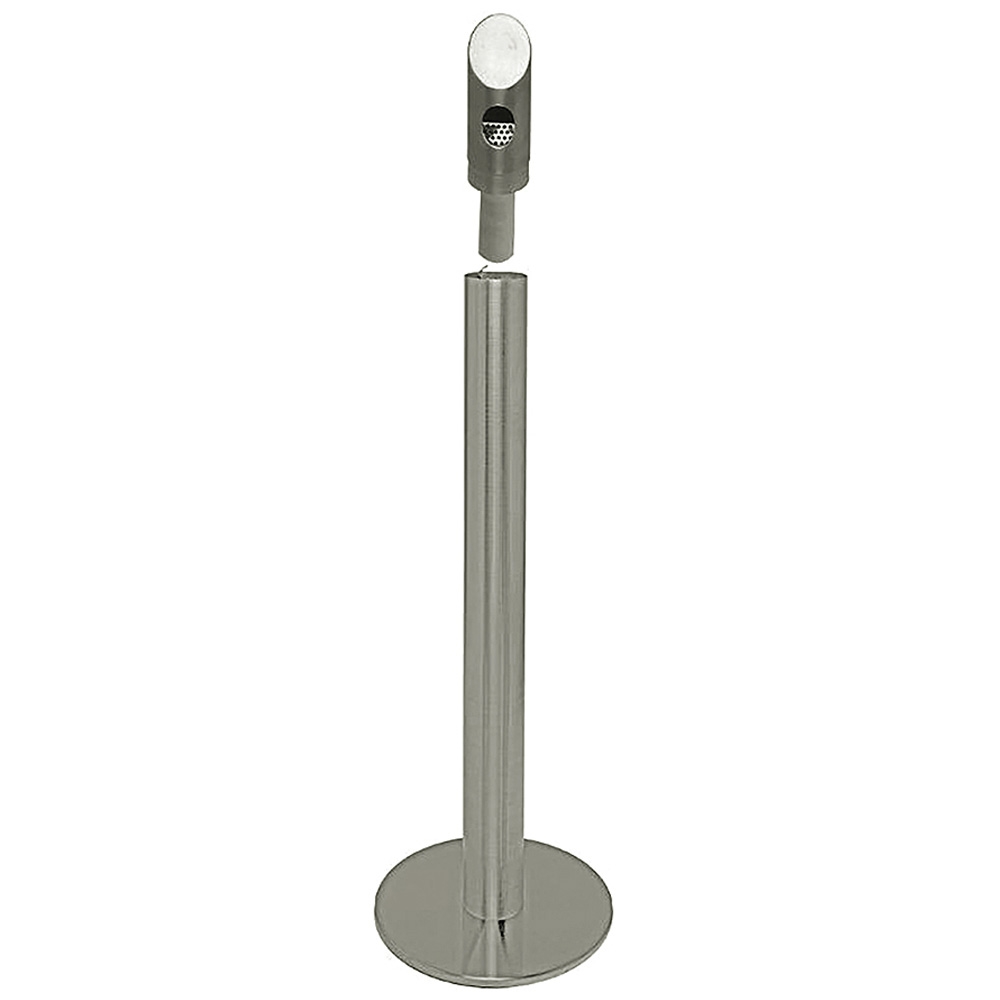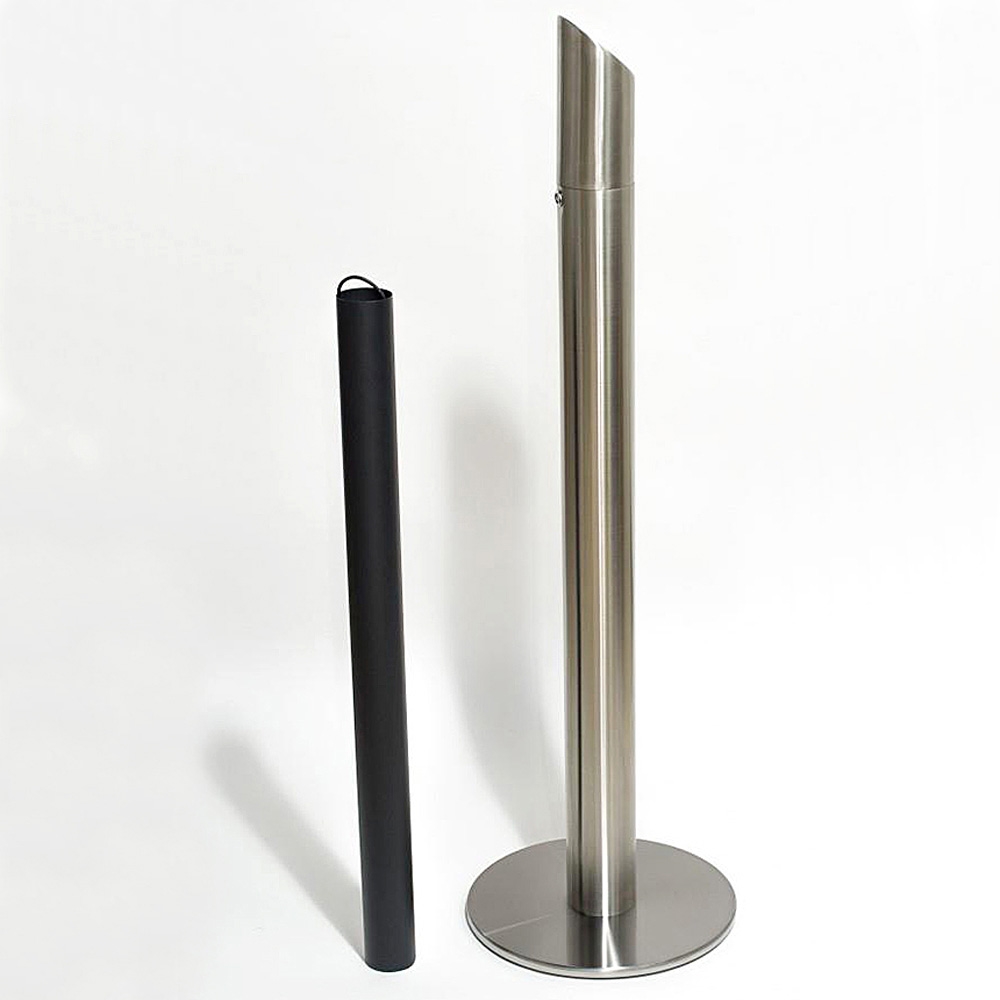 Askkoppstång i rostfritt stål eller grålackerat stål RAL 9007 är en rörformad askkopp med tung fot som garanterar stor robusthet. Toppen skruvas enkelt av för att tömma den inre behållaren, vilket gör rengöringen till en enkel uppgift. Den unika designen av öppningen säkerställer att denna askkopp är dedikerad endast till aska, vilket minskar risken för onödig förorening från vanligt skräp.