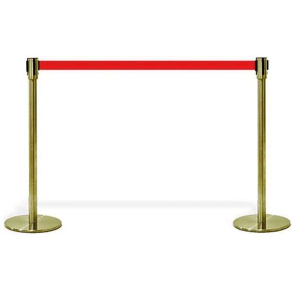 Detta är ett avspärrningsstolpsystem bestående av två stolpar med ett rött band. Systemet är utformat för att styra folkmassor och markera begränsade områden. Stolparna är lätta att installera och det röda bandet är synligt och hållbart. Perfekt för köhantering, evenemang, utställningar och mer.