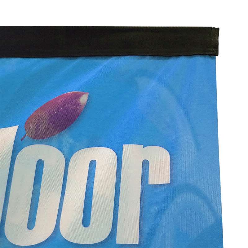 • 110 gram Ekotex flaggmateriel med sömmar, öglor m.m. - genomtryck på baksidan