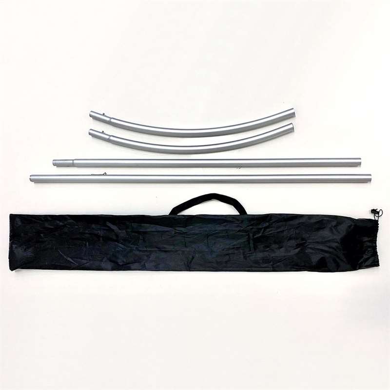 Solid och robust flagghållare för utomhusbruk för bågformat flagg, tillverkad med en kraftig aluminiumstav i silverfärg med en diameter på 25 mm. Denna hållare är lätt att montera. Levereras med väska, men utan fot och banner/flagga, vilka kan köpas separat. Vikten är 1,9 kg.