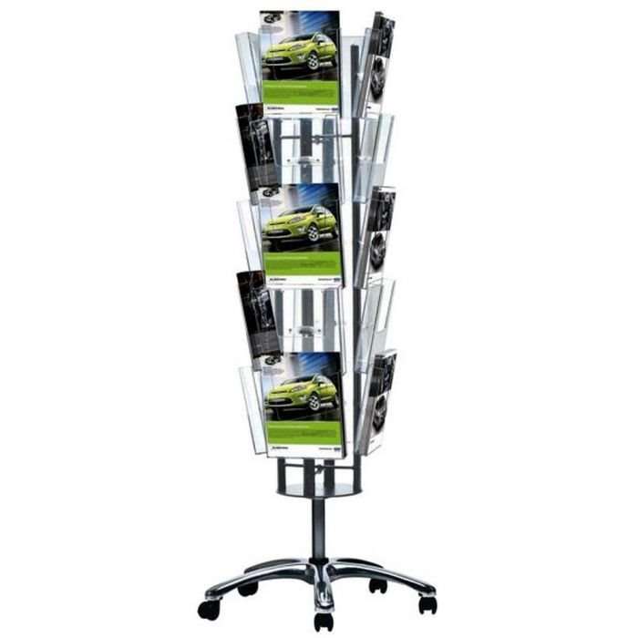 Fäst dina publikationer säkert och låt dem sticka ut med denna kvalitetsbrochurekarrusell med hjul.