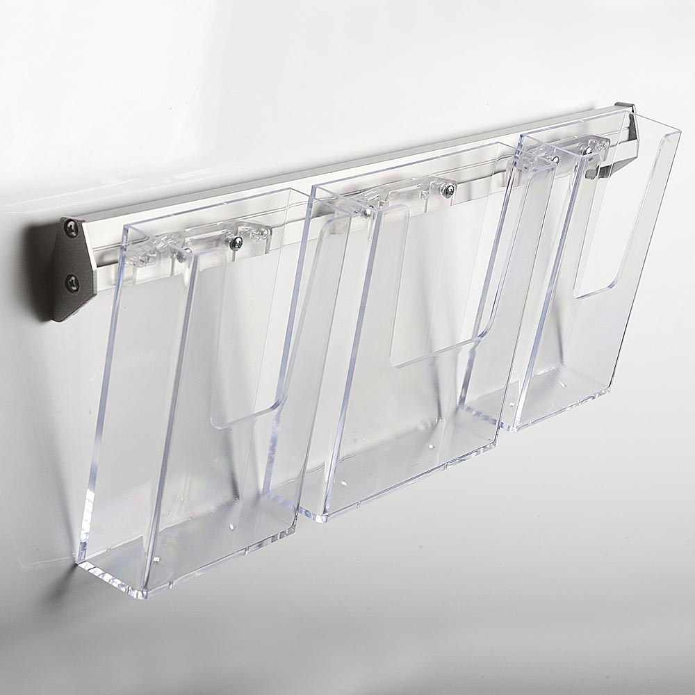 Broschyrhållare för vägg, aluminiumlist med 3 st. M65 akrylhållare
