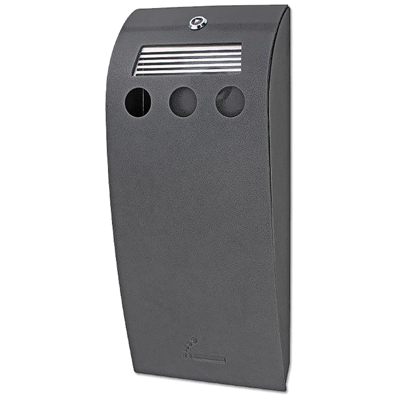är en askkopp i stilrent design, perfekt för montering på vägg, pole stand eller multi stand. Denna 1,3 liters askkopp är tillverkad av robust galvaniserat stål, designad för att stå emot även de tuffaste väderförhållandena. Den böjda frontluckan ger en elegant touch till det övergripande designen, vilket gör den till ett idealiskt tillskott till alla utomhusmiljöer.