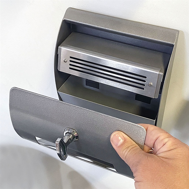 • Säkerhet och rengöring: Askkoppens behållare är utrustad med lås för att förhindra obehörig åtkomst. Den är även lätt att tömma vilket gör rengöringen enkel.