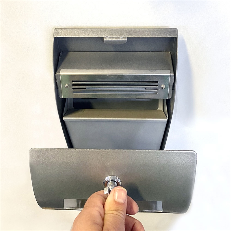 • Kvalitetsmaterial: Askkoppen är tillverkad av galvaniserat stål och har en rundad frontlucka som säkerställer lång hållbarhet och motstånd mot väderpåverkan.