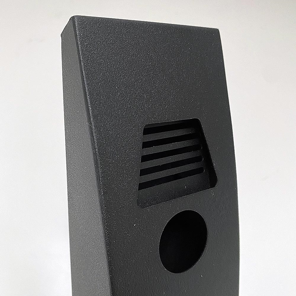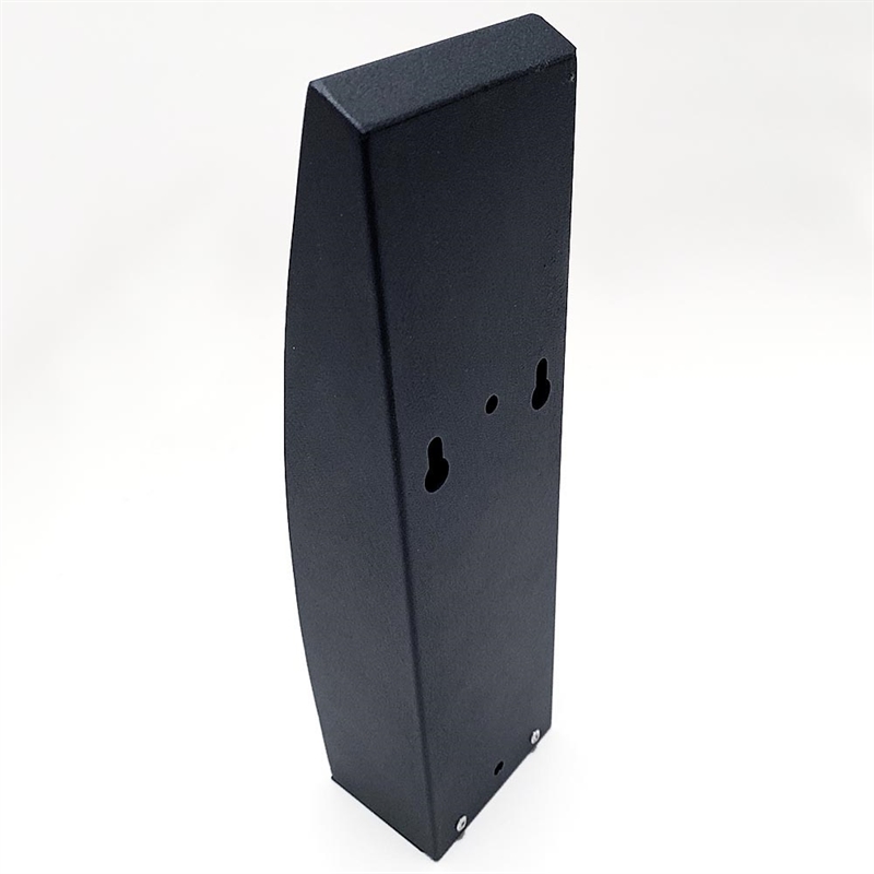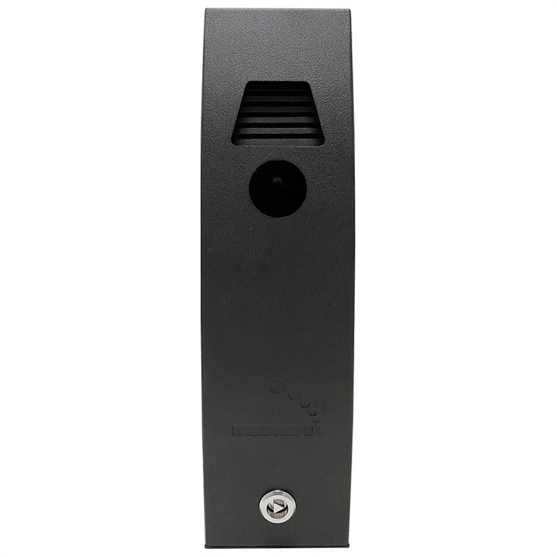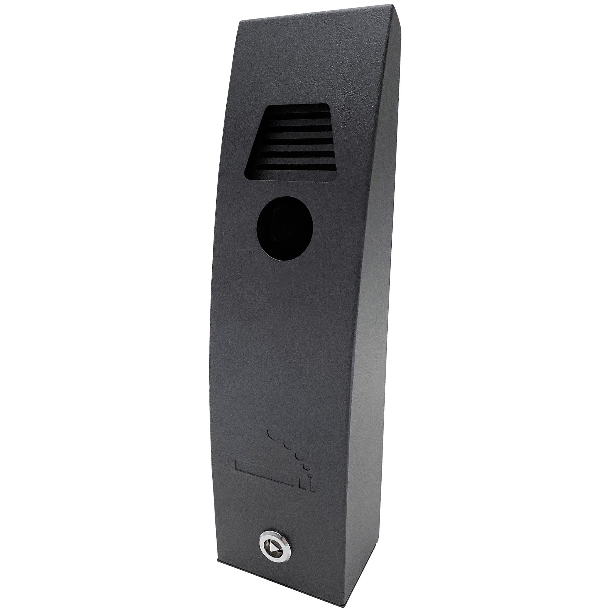 Utomhus askkopp i svart, pulverbetsat stål. Snygg, böjd design. För montering på vägg, pollare eller som en flerstandare. Behållaren har lås och nyckel och är lätt att tömma. Inkl. skruvar och pluggar.