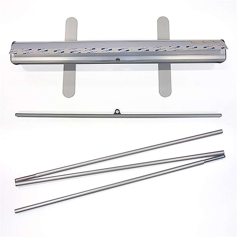Kampanjmodell. Lätt roll-up i stilren design. Kassetten är gjord av något tunnare aluminium än Budget och Basic -versionerna. Toppprofil med klämlist, samt tejp på plastbottenrullen gör det enkelt att montera banderollen. När ett meddelande ersätts måste ny tejp installeras. Inkl. svart lyxväska.