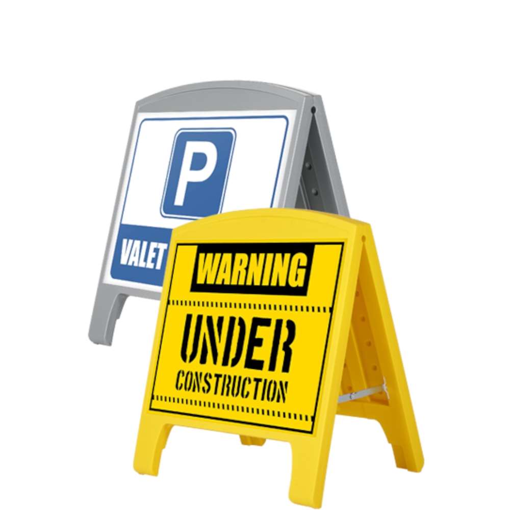A-skilt i kraftig plast. För folie eller screentryck på båda sidor. Handtaget upptill gör den lätt att flytta. Kan användas både inomhus och utomhus.