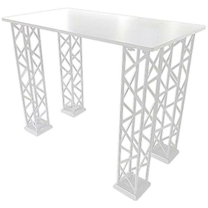En modern och hållbar mässdisk som passar för alla utställningar eller evenemang. Finns i svart eller vit, levereras med ben, fötter och en MDF-skiva och är 98 cm hög - för enkel presentation av produkter eller tjänster.