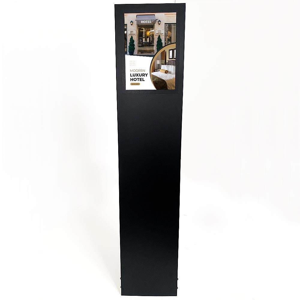 Informationsställ i stål – svart pulverlackat. En A4 magnetram med svart kant ingår. Flera kan köpas till – det finns plats för 4 stycken. Lätt att byta budskap. God och kraftig kvalitet.