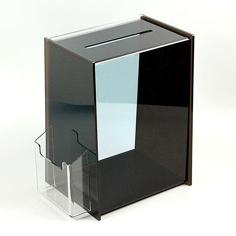 • Högkvalitativ donationsbox i akrylmaterial, tillgänglig i både svart och transparent design.