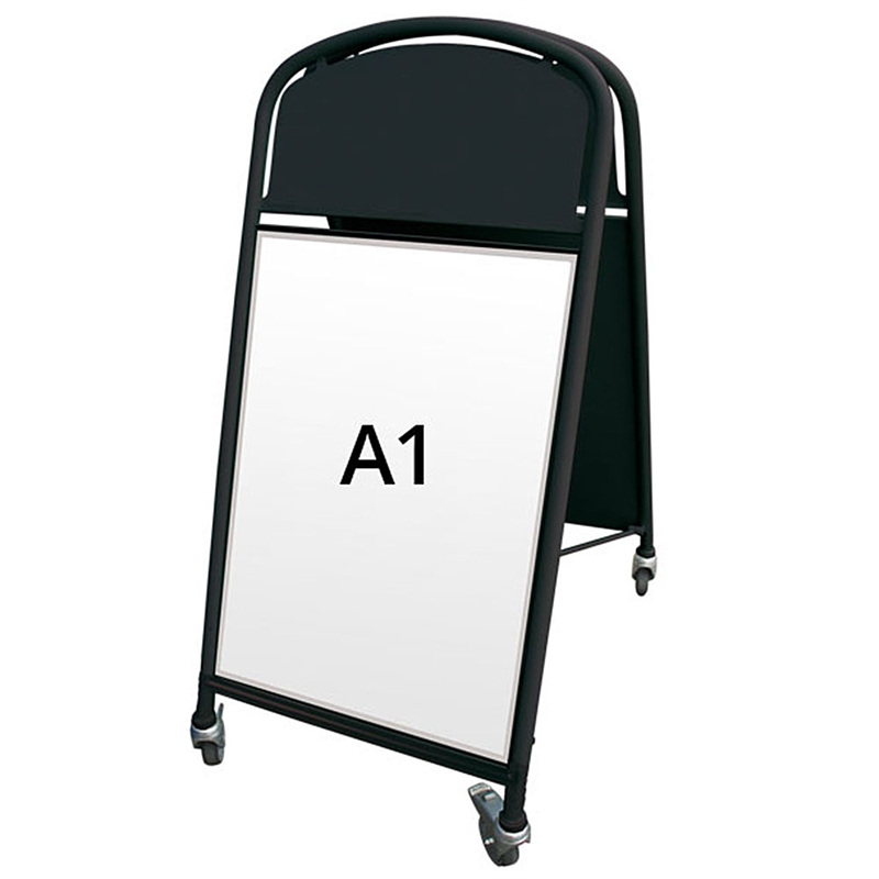 • Det är ett A1-format skylt (59,4 x 84,1 cm) med en total storlek på 72 x 141 x 98 cm, perfekt storlek för att fångar förbipasserandes uppmärksamhet.