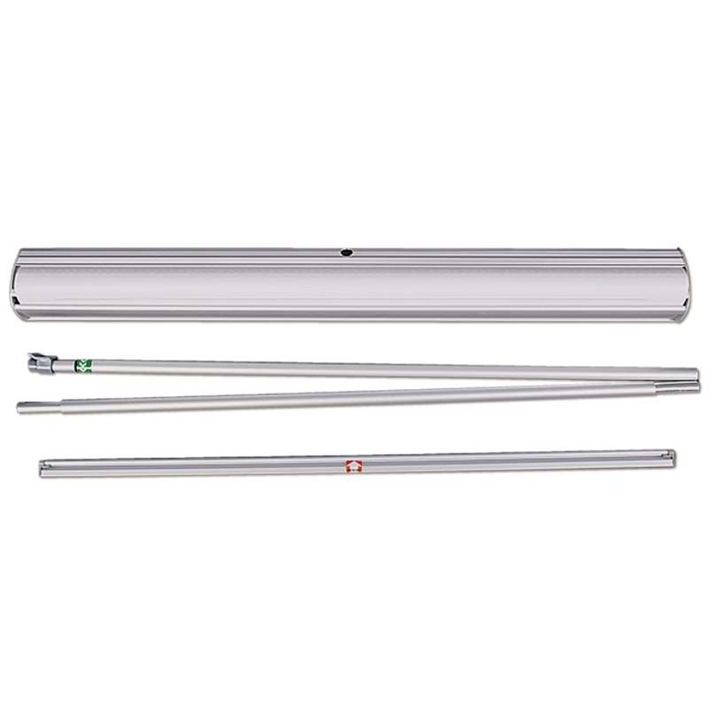 Denna produkt, som är noggrant designad och konstruerad med fokus på kvalitet, inkluderar en tryckt och monterad banner som ger ditt varumärke den visuella framhävning det förtjänar. Den robusta konstruktionen, utförd i kraftig silveranodiserad aluminium, säkerställer produktens hållbarhet medan två tåliga fötter ger optimal stabilitet. Central för dess design är den inbyggda teleskopstången som ger variabel höjd, vilket möjliggör anpassning av produkten till ditt specifika displaybehov.