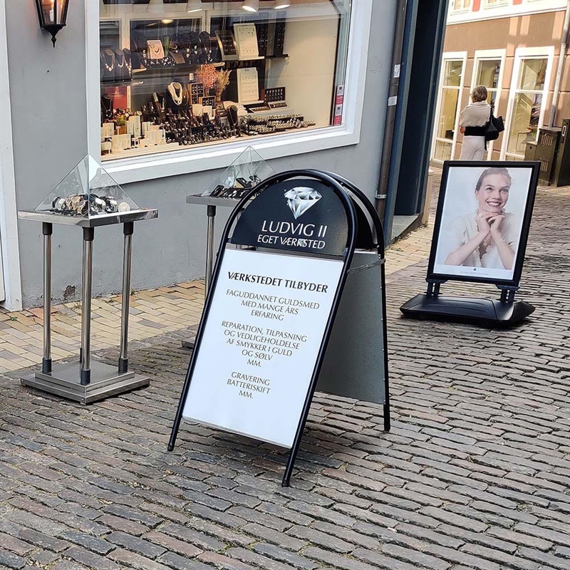 • Elegant Gatupratare med logoplatta designad för att presentera ditt företag eller evenemang på ett stilfullt sätt.