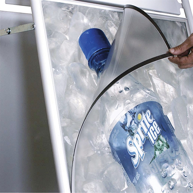 Med en total storlek på 58 x 111 cm och en affischstorlek på 50 x 70 cm är denna skylt perfekt för att dra till sig uppmärksamhet. Vill du ha en passande affisch till din skylt? Vi är här för att hjälpa! Vår skickliga grafiska avdelning kan skapa en skräddarsydd affisch åt dig på väderbeständig PET Stayflat-film. Kontakta oss via e-post eller telefon så är vi redo att hjälpa.
