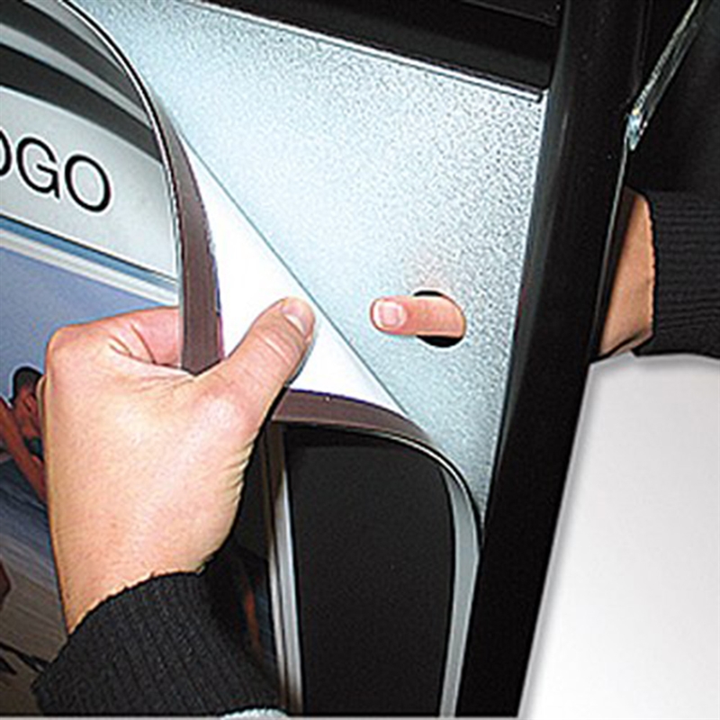 • Skyltens framsida är tillverkad av antireflex APET med en magnetisk stängning, vilket förbättrar skyltens synlighet i alla ljusförhållanden.