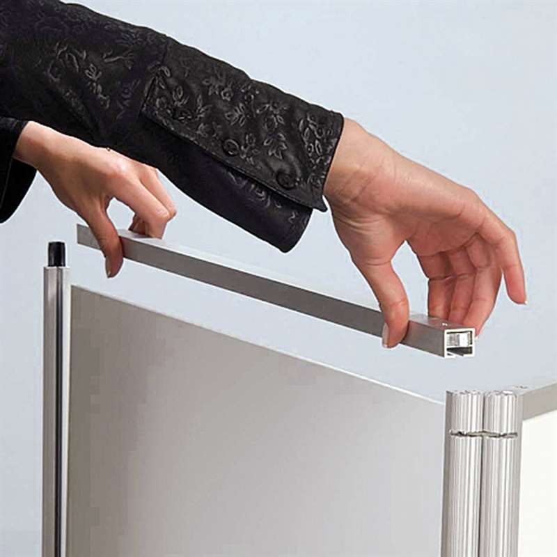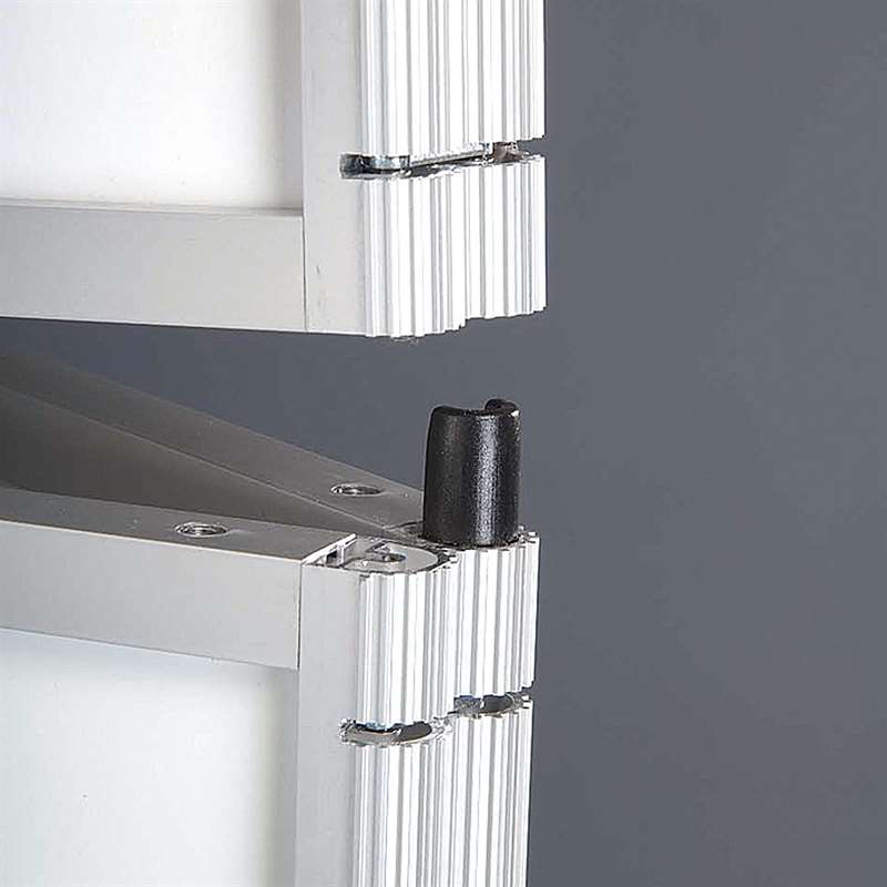 Med robusta silveranodiserade aluminiumramar, som kan placeras i lägena 0 - 360?. Lätt att transportera och ställa in. Inkl. 9 vita, 3 mm PS-ark. Täck tallrikarna med folie (ingår ej). Svart väskset kan köpas som tillbehör.
