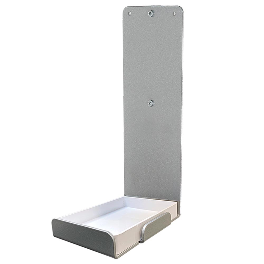 Denna hållare är en praktisk lösning för placering av din spritsdispenser. Den är tillverkad av hållbart stål, som är polyesterlackerad i en diskret grå färg. Designen inkluderar också en droppbricka, som är tillverkad i 2 mm vit akryl.
