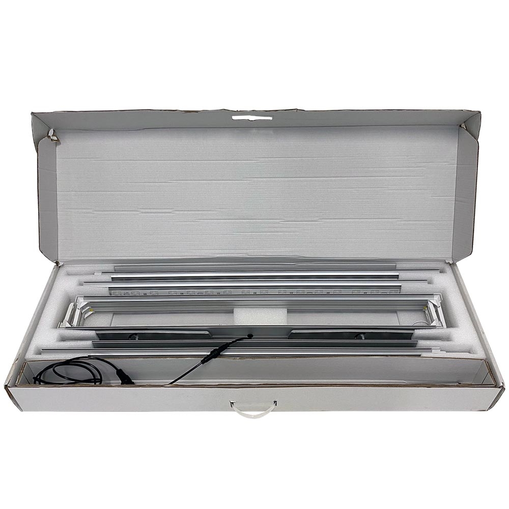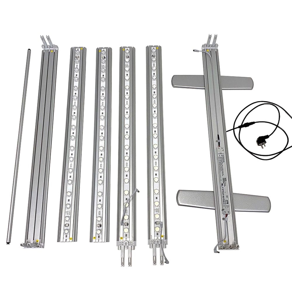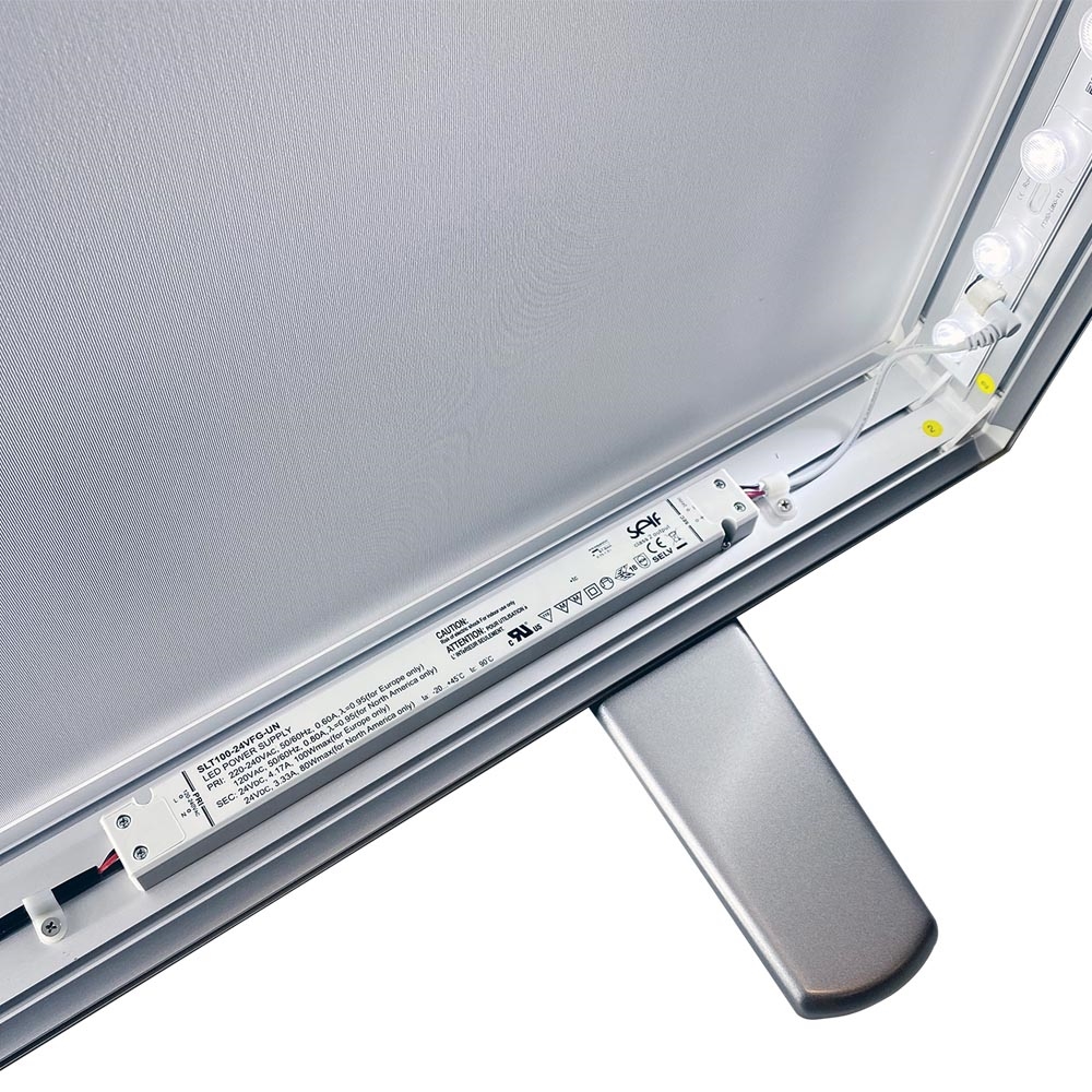 En dubbelsidig aluminium ljuslåda med två robusta fötter och kraftfulla LED-dioder som sträcker sig längs båda sidorna. Denna fantastiska ljuslåda levererar en exceptionellt stark och jämn belysning över hela ditt budskap, vilket verkligen får det att sticka ut.
