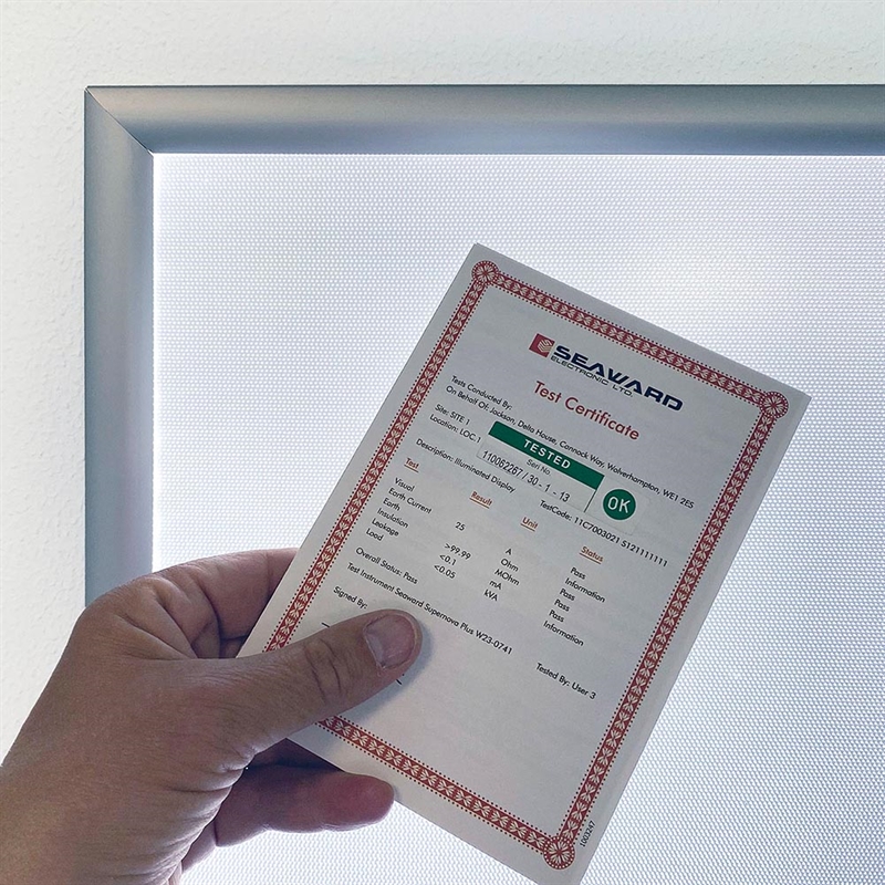 • Enkeltsidig LED-ljuskasse med elegant silver eloxerad snapprofil för en professionell look.