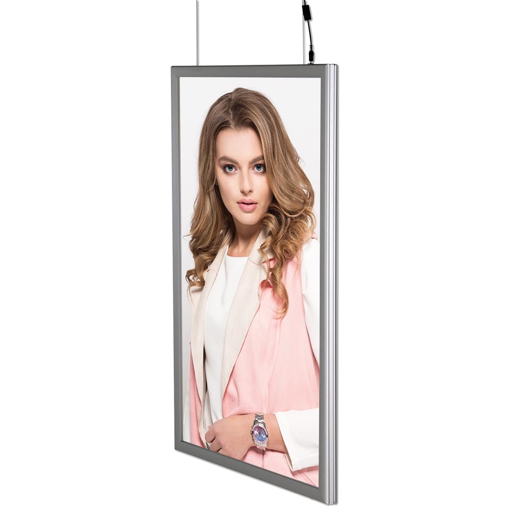 • LED ljusram med homogent ljus: Upplev en fantastisk ljusfördelning i denna dubbelriktade LED ljusram. Perfekt för att lyfta fram ditt budskap.