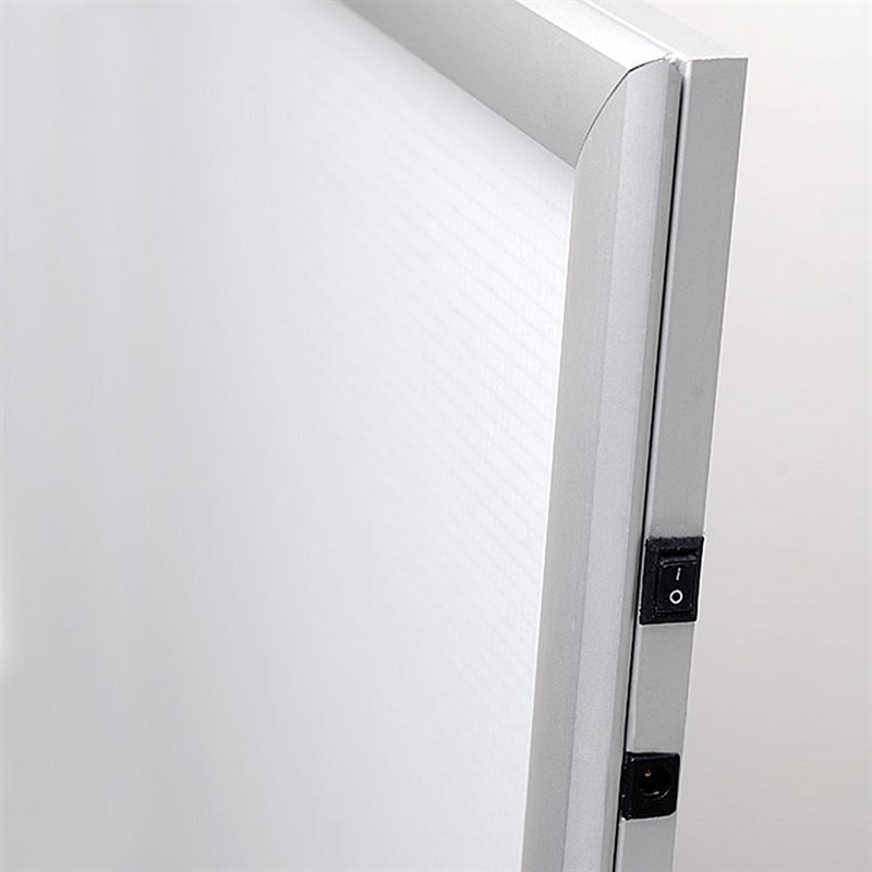 Enkelsidig LED ljuslåda med ett fantastiskt homogent ljus. Tillverkad i 25 mm aluminiumprofil. Ultratunn - 19 mm djup. Använder 60 % mindre effekt än lysrör. Lätt att byta meddelande. Levereras med två väggfästen samt skruvar och pluggar. Endast för inomhusbruk.
