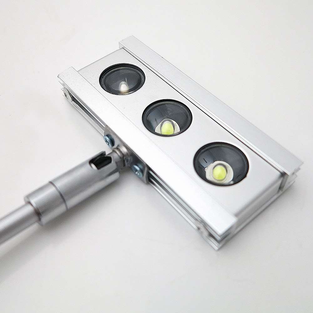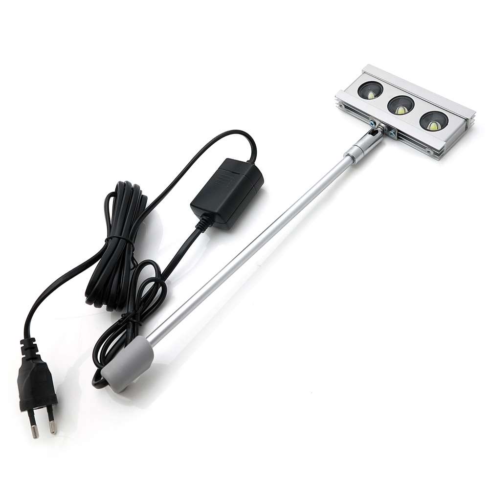 Fungerar denna LED-spot vid 15V och erbjuder kraftfulla 9W. Lux-kapaciteten är 700 LM per LED-lampa, vilket ger en stark och effektiv belysning för dina roll-ups. Liksom de flesta av våra produkter kan denna LED-spot användas från 110/120 volt till 220/230 volt. Färgkvaliteten ligger i det naturliga spektrumet på 5500-6500k Kelvin, vilket är idealiskt för att presentera dina produkter i det bästa ljuset. Totalmåtten för lösningen är 33,5 cm i längd och 10,5 cm i bredd. Färgen på LED-spotten är silveranodiserad, vilket matchar det starka och hållbara aluminiummaterialet det är gjort av.