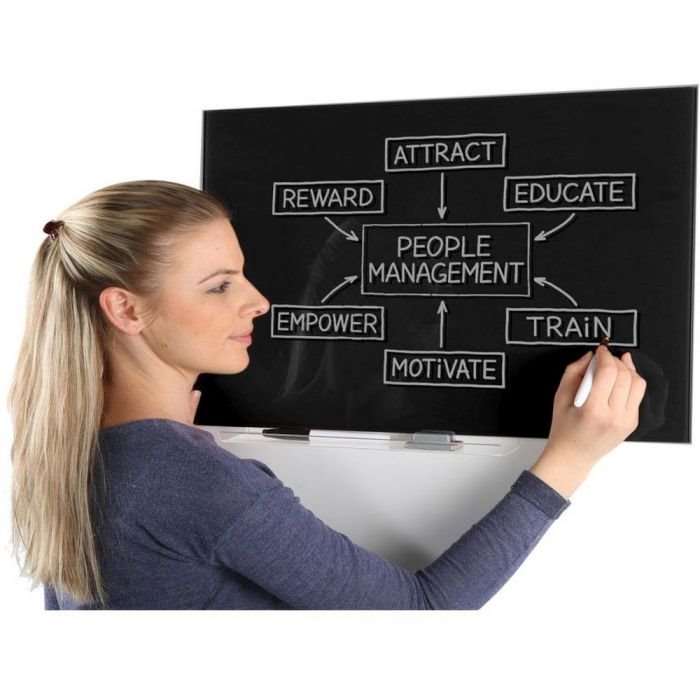 Magnetskiva av härdat glas för väggupphängning. Inkl. magneter, penna och whiteboard suddgummi. Välj mellan svart och vitt.