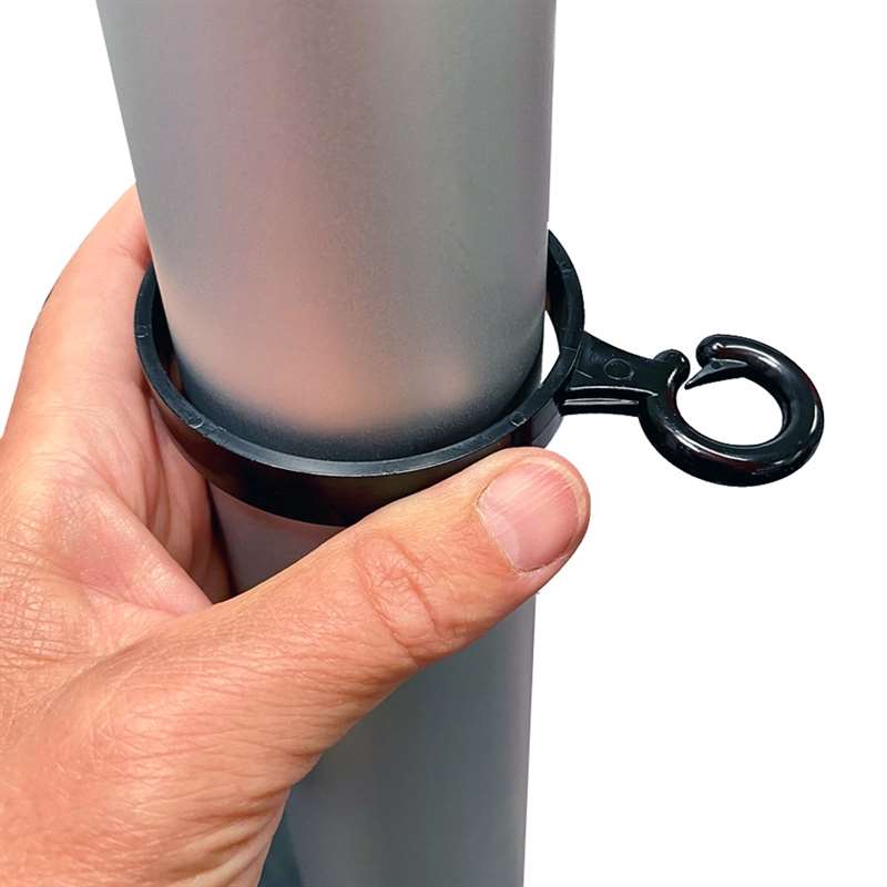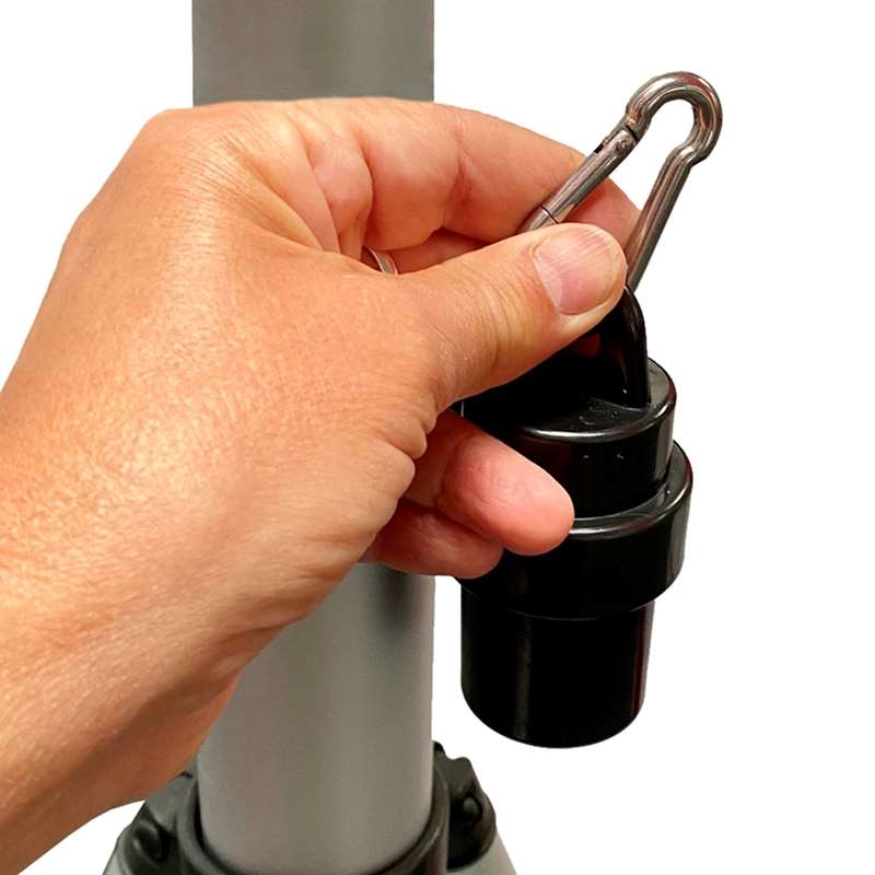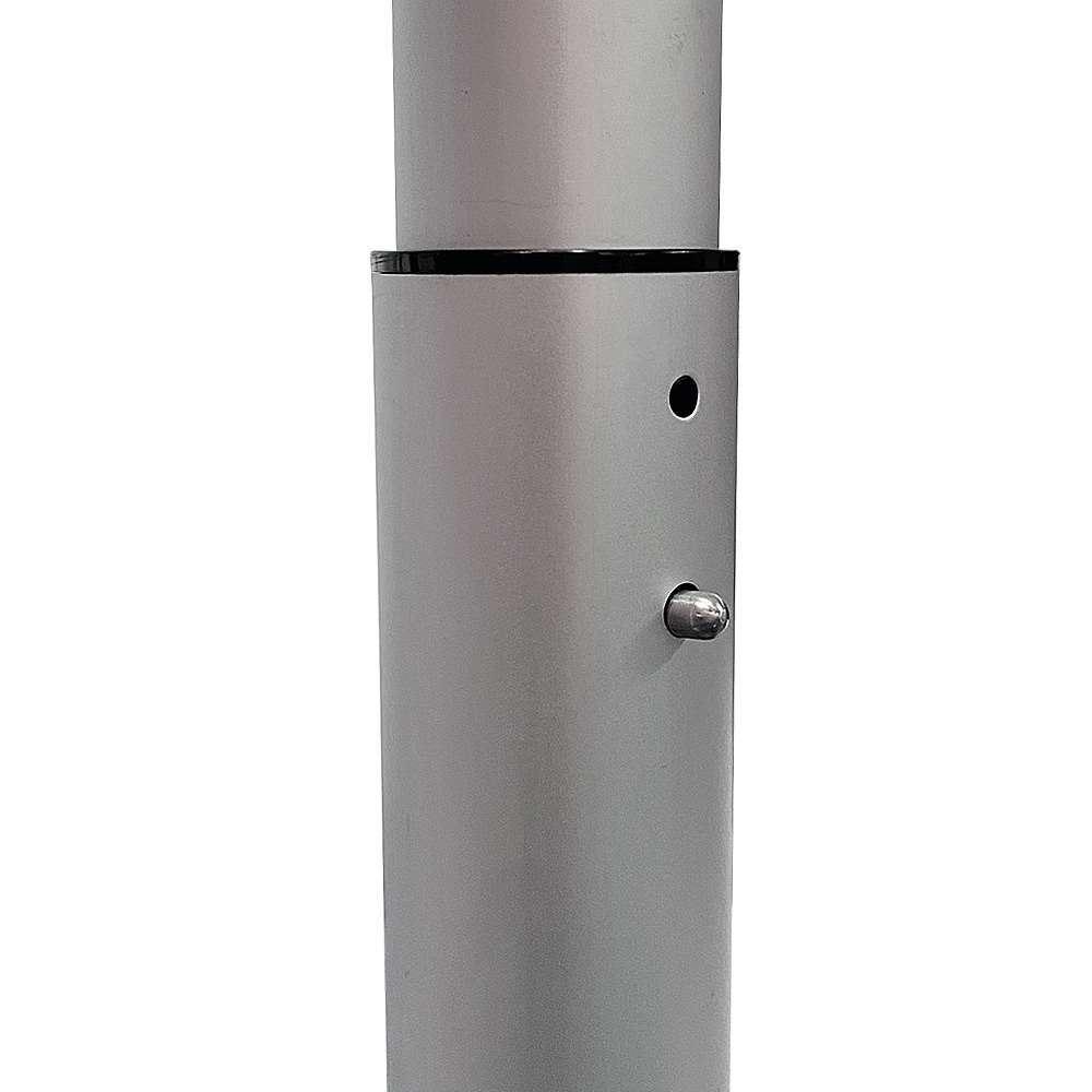 5,2 meter hög eventflaggstång tillverkad i anodiserad aluminium. Med stor grå plastbotten som kan fyllas med 70 liter sand eller vatten - vid frost fylls på med frostskyddsmedel. Lämplig för vindar upp till 8 m/sek.