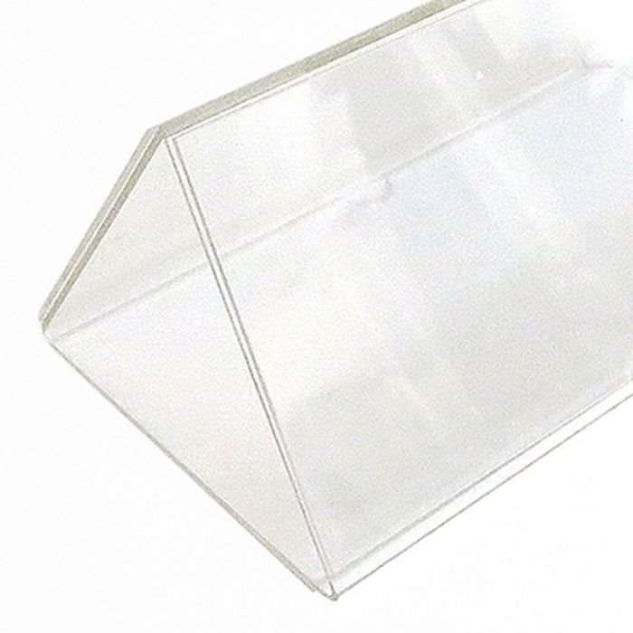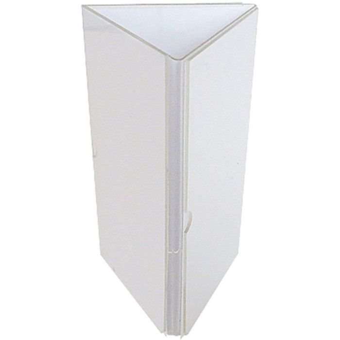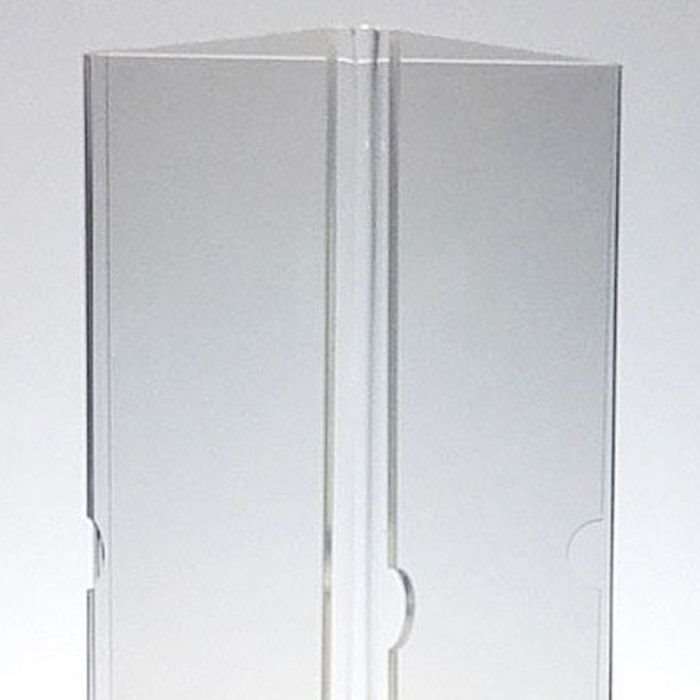 Den är tillverkad av 2 mm akryl, vilket ger den hållbarhet och stabilitet samtidigt som dess transparenta utseende möjliggör en enkel visning av dina menyer eller flyers. Med totala dimensioner på 11,5 x 21,3 x 11,5 cm kommer denna menyhållare passa perfekt på vilket bord eller disk som helst. Dess triangulära form gör det möjligt för dig att visa olika information från varje sida, vilket gör det enklare för dina kunder att se och välja från dina erbjudanden.