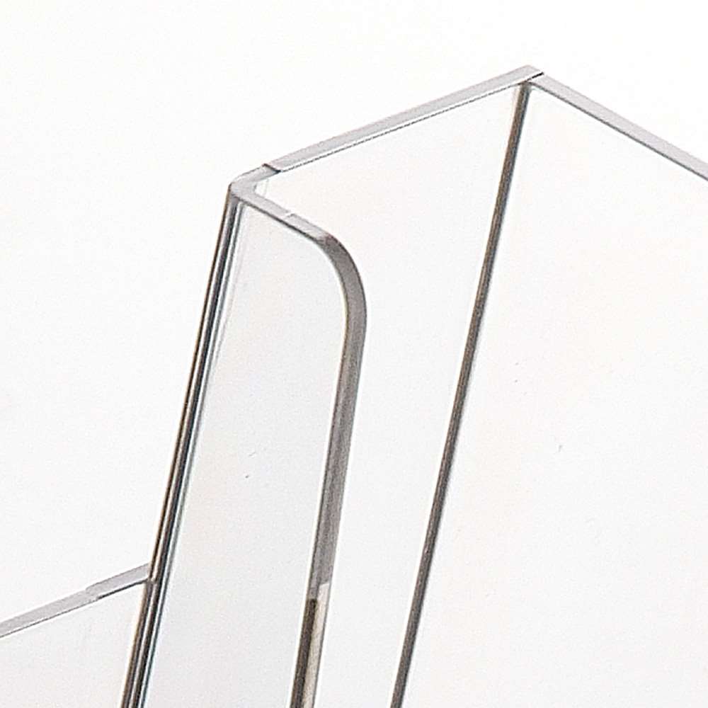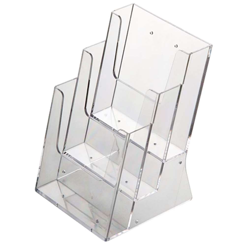 Broschyrhållare tillverkad i transparent formsprutad polystyren.