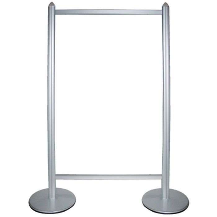 Den är uppbyggd av fyra 190 cm höga multistativprofiler med en rund fot, vilket gör den extremt stabil och säker att använda. Profilerna är tillverkade av silveroxidiserat aluminium, vilket är lätt att montera med endast två insexskruvar. Det betyder att även i en hektisk miljö kan du enkelt och snabbt ha din banner eller skylt på plats och redo att användas.