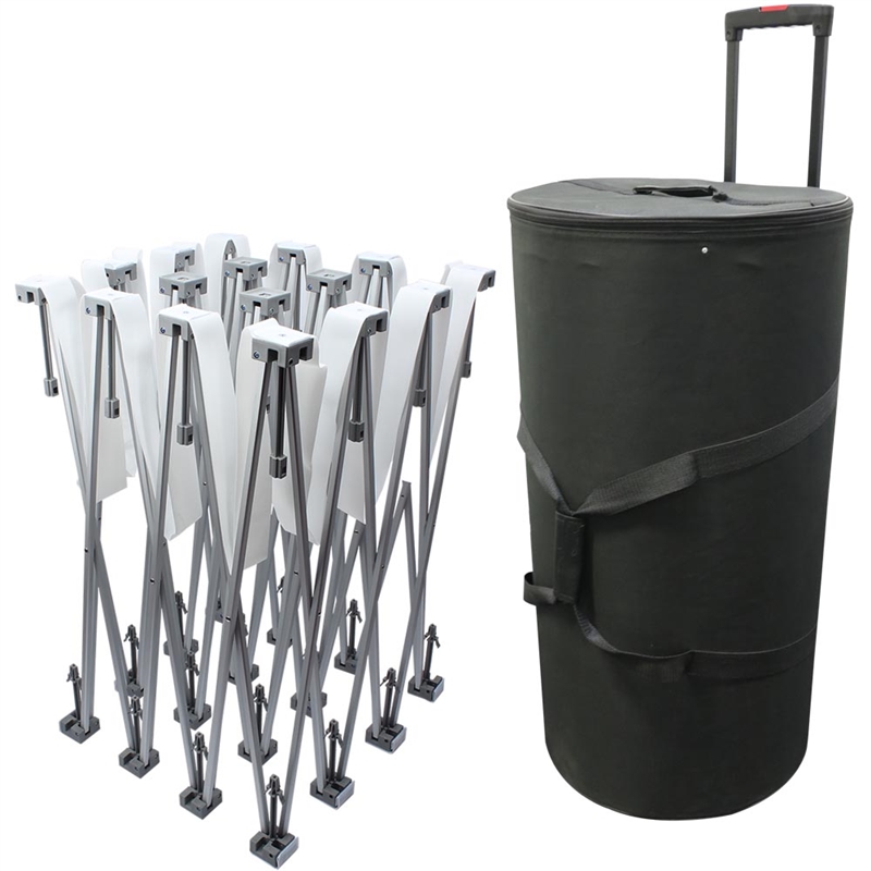 • När du är redo att packa ihop kan du enkelt göra det med den medföljande svarta trolleyn, som också hjälper till att transportera och förvara väggen på ett enkelt och säkert sätt.