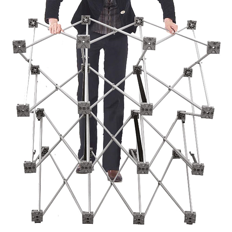 Konstruktion gjord av lätt hopfällbart aluminiumrör. Konstruktionen gör det enkelt att montera paneler med magnetremsor. Levereras komplett - med paneler - i svart resväska/ counter med hjul. Spot, bordsskiva och PVC-panel till counter köps som tillbehör.