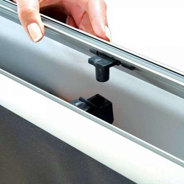 • Klämprofil upptill och nedtill gör det enkelt att montera och byta banderollen.
