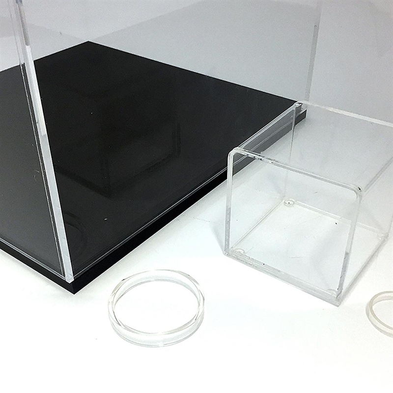 • Elegant fyrkantig akrylbox med svart botten, perfekt för professionell presentation av produkter.