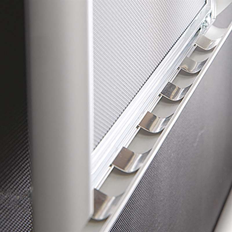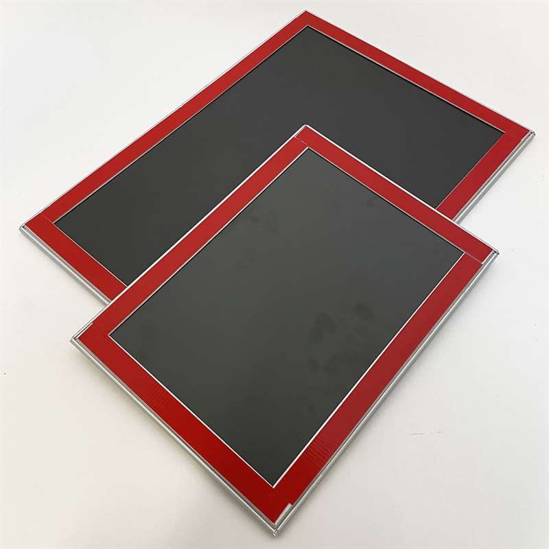 Silveranodiserad vikram med 25 mm aluminiumprofiler med geringshörn. 1,5 mm PS bakplatta och APET antireflex frontplast . Lätt att montera på en slät yta med dubbelhäftande tejp på baksidan.