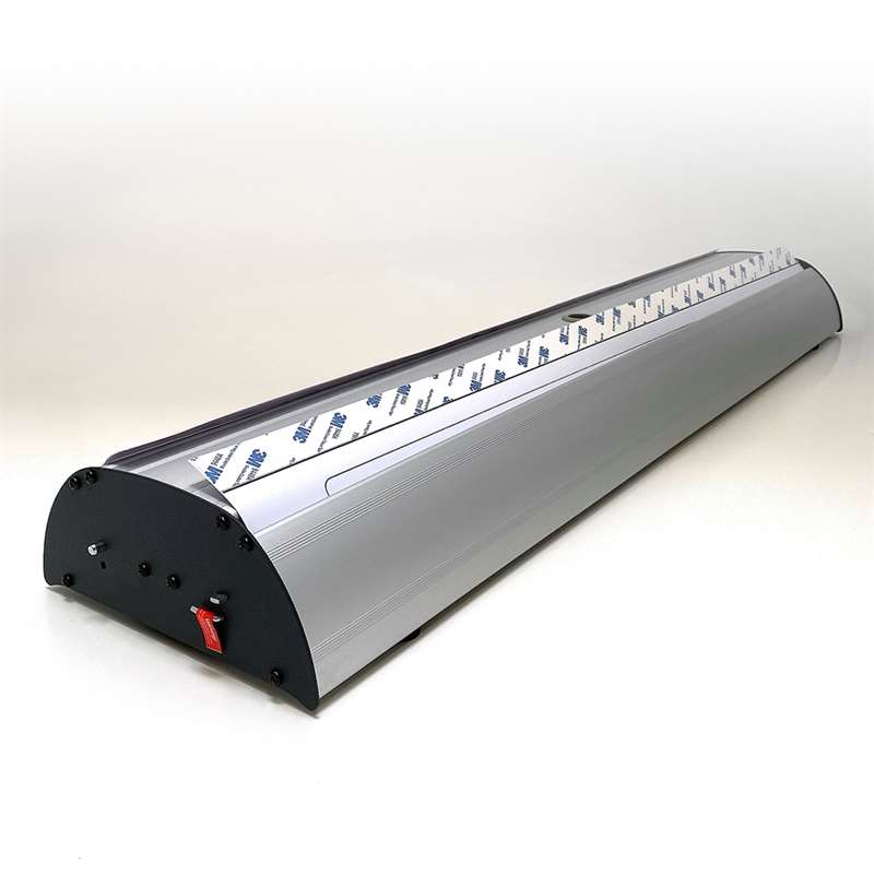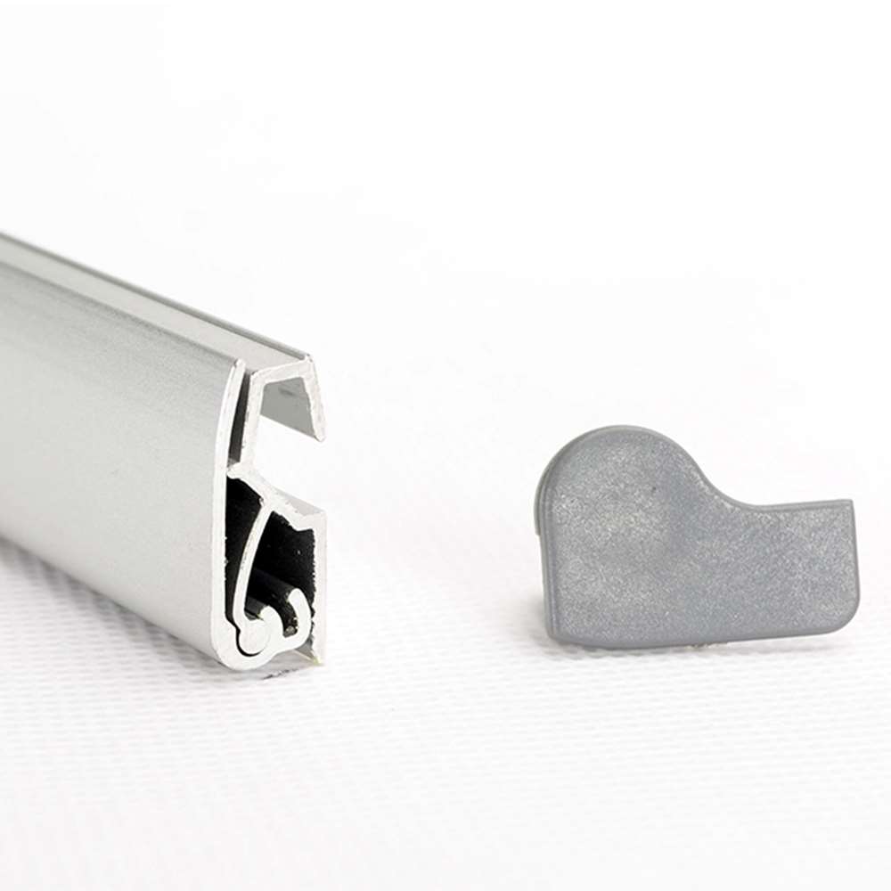 • Enkel montering: Med en topprofil med klämlist och tejp på plastbottenrulle är det enkelt att montera baneret. Vid utbyte av budskap måste ny tejp monteras.