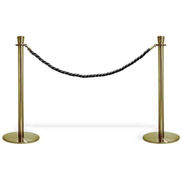 Detta produkt är ett avspärrningsstolpe system, som inkluderar två stolpar utrustade med en svart rep. Denna lösning är perfekt för att organisera och kontrollera publikrörelser i olika miljöer såsom konserter, utställningar eller biografer.