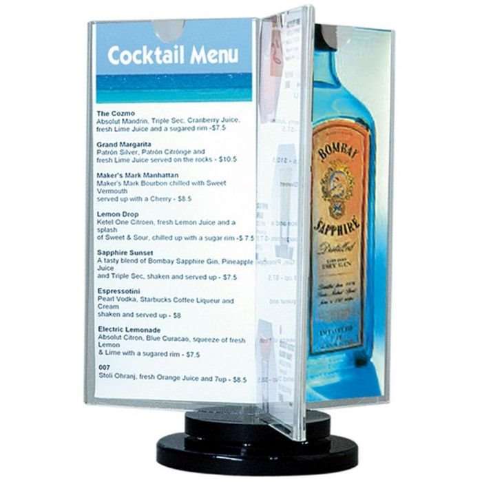 Spin Menukortholder är idealisk för restauranger, caféer, hotell och andra platser som vill visa sina budskap på ett professionellt sätt.