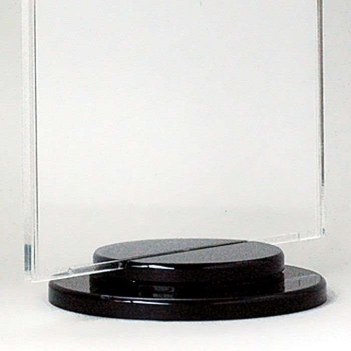 Spin Menukortholder är tillverkad av robust akryl i svart och transparent design, vilket ger en elegant och professionell look. Med svart akrylfot kan denna menyhållare rotera 360 grader, vilket gör det enkelt att visa dina menyer, erbjudanden, information och prislistor från alla vinklar.