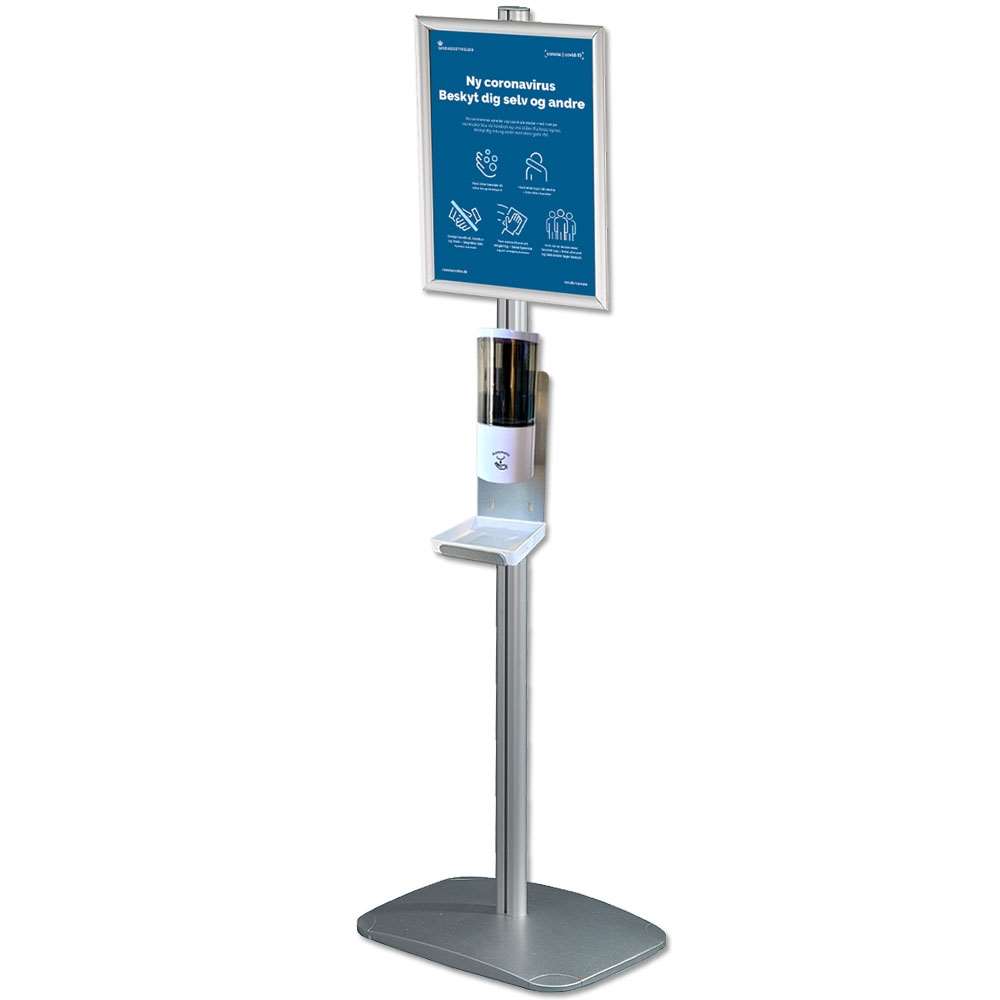 Med denna handspritställ, som levereras med en 500 ml dispenser, en minimultiställ och en A4-ram. Den stiliga och robusta infostället är tillverkad av högkvalitativt aluminium och är 50 cm hög, vilket gör den enkel att använda för både vuxna och barn. Den fyrkantiga basen ger extra stabilitet och säkerställer att stället förblir på plats, även i hektiska miljöer.