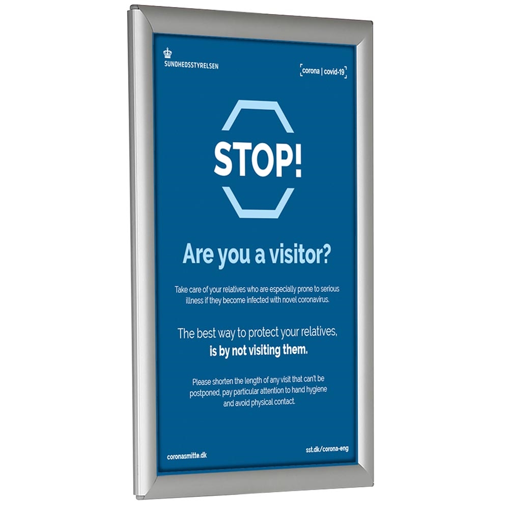 Denna 25 mm aluminium klaffram är avsedd för A4 och A3 affischer och förstärker den allmänna synligheten av viktiga säkerhetsregler och instruktioner. En bonusfunktion är den lilla hyllan med kardborrband, som är utformad för att hålla en handspritflaska. Väggmonteringen gör det enkelt att installera denna hållare och klaffram på alla typer av väggar, vilket ger en praktisk lösning för rengöringskontor, hälsovårdscenter, skolor och många andra offentliga platser.