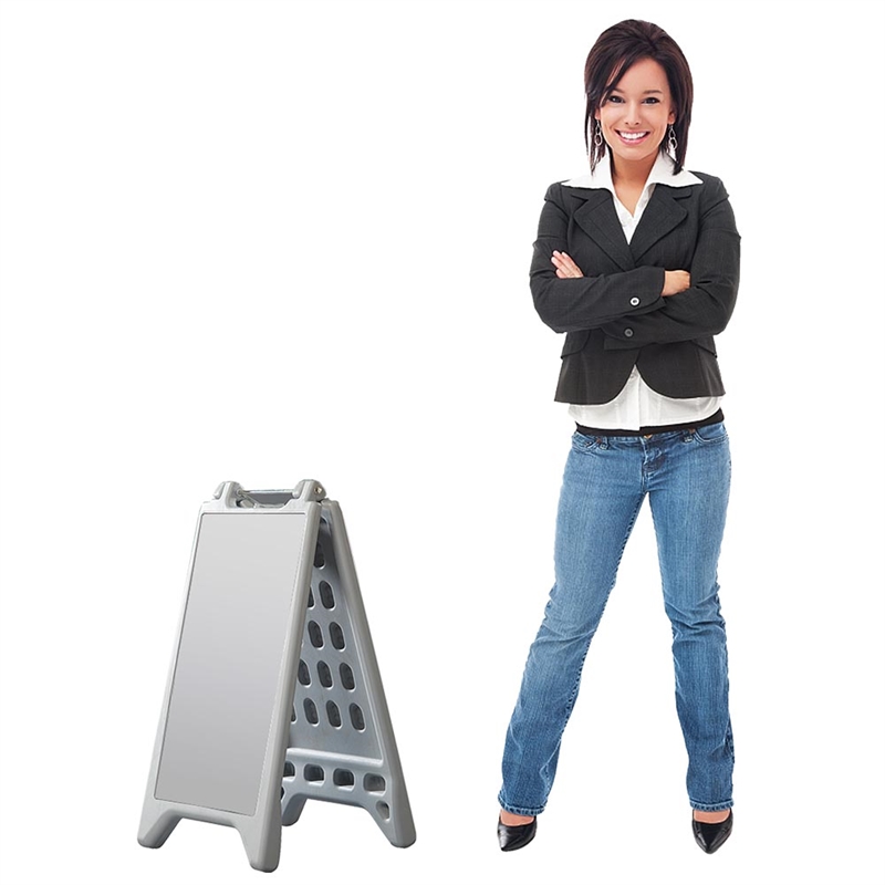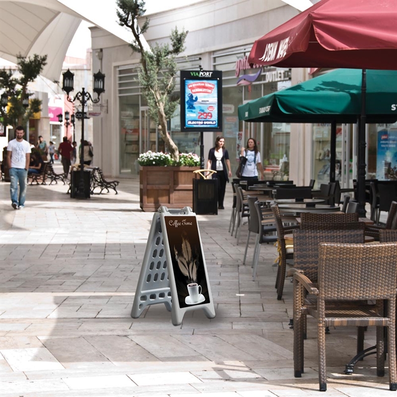 Det ultimata skyltet för att skapa uppmärksammade presentationer. Designat av Vacu Display, en ledande aktör inom skyltlösningar. Detta A-gadeskylt är tillverkat av robust grå plast som är designat för att motstå både tidens tand och väderutmaningar.