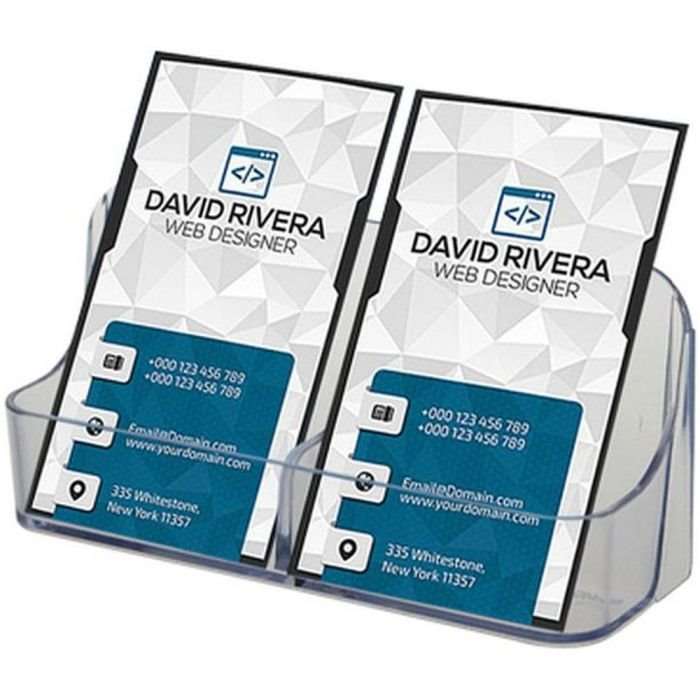 Perfekt för dig som behöver presentera dina visitkort på ett professionellt, stilrent och lockande sätt. Denna dubbla visitkortshållare är tillverkad av transparent formsprutad akryl. Materialvalet garanterar lång hållbarhet och gör dina visitkort lätta att se och läsa för potentiella kunder eller samarbetspartners.